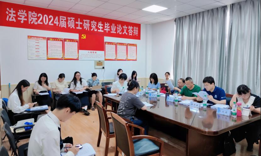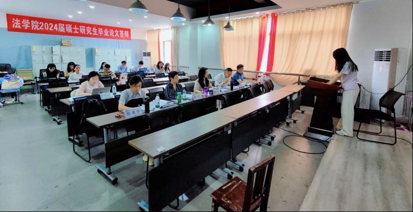 2024年5月21日,法学院2024届硕士研究生学位论文答辩会于金盆岭校区4号教学楼顺利举行。答辩会共计47名研究生参加,我院邀请了多位校外专家担任答辩委员,与十余位校内教师组成答辩委员会共同指导此次答辩工作。