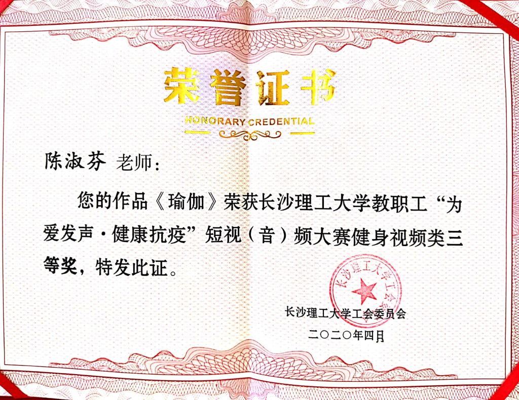 3月5日,校工会发布《关于举办威廉体育williamhill教职工“为爱发声•健康抗疫”健身、朗诵短视(音)频秀活动(大赛)的通知》后,法学系分工会积极组织老师们参加。法学系张敏纯、田兴洪、易顶强、陈杨、姜明、陈淑芬、申纯、孙亚贤、张涛、何凌、熊文娟、陈骞等12位老师提供了9件参赛作品,其中健身视频秀作品7件,朗诵音频秀作品2件。经过法学系组织评审组评选,推荐易顶强、陈杨、姜明、陈淑芬、张涛、何凌、熊文娟、陈骞等人的5件作品参加学校决赛。陈淑芬老师的作品《瑜伽健身》荣获健身视频秀类三等奖。