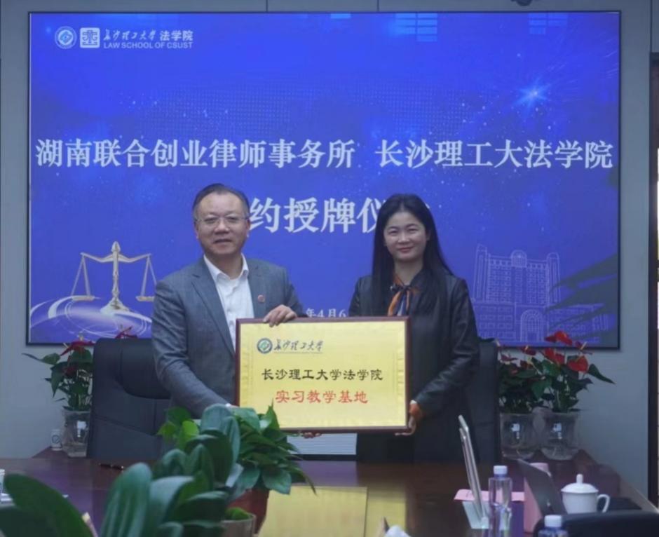 4月6日下午,威廉体育williamhill法学院与湖南联合创业律师事务所在四号教学楼313会议室举行实习就业基地签约授牌仪式。湖南联合创业律师事务所管委会主任胡赞兵、管委会行政总监罗湘波、管委会财务总监唐锦昌、管委会宣联主任刘研、妇委会主任梁腊梅,法学院院长张敏纯,党总支书记田兴洪,党总支副书记汪功伟,副院长申纯,副系主任王寰,学工办主任熊文娟出席仪式。仪式由书记田兴洪主持。