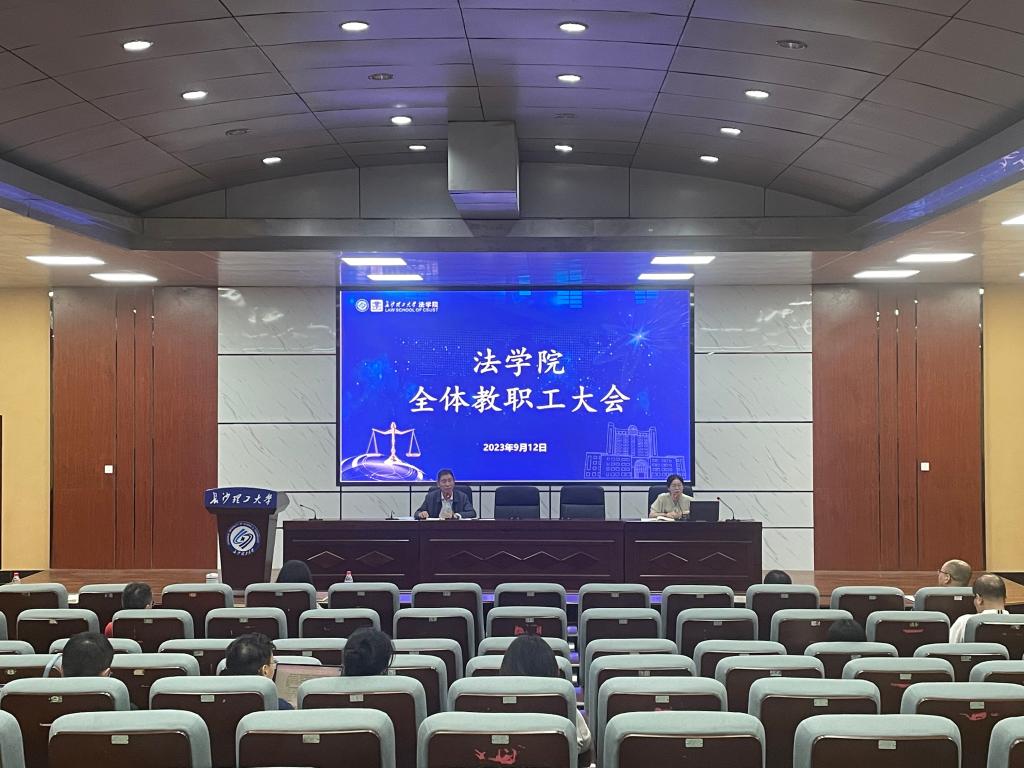9月12日下午,法学院在四号教学楼召开全院教职工大会。学院全体班子成员及教职工参加会议。学院党总支书记田兴洪主持会议。