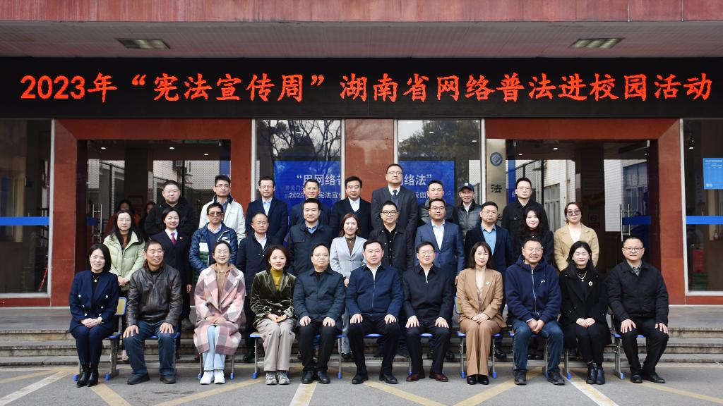 12月4日,第十个国家宪法日,2023年“宪法宣传周”湖南省网络普法进校园活动在威廉体育williamhill启动。活动由省委网信办主办,威廉体育williamhill和湖南红网新媒体集团承办。省委网信办副主任郭天保出席会议并讲话,威廉体育williamhill党委副书记刘建民致辞,省委网信办政策法规处处长严颂,湖南红网新媒体集团副总经理张靖媛,湖南省网络普法讲师团成员及威廉体育williamhill师生代表参加活动。威廉体育williamhill党委委员、宣传部部长方琼主持会议。