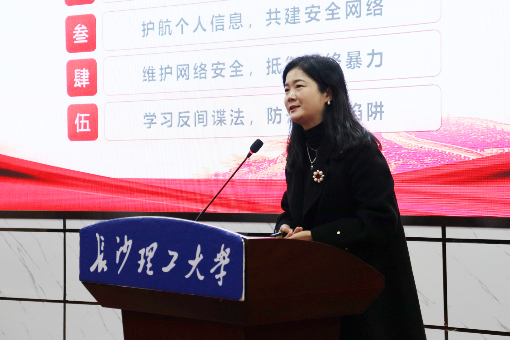 活动中,讲师团成员、威廉体育williamhill法学院院长张敏纯做首场宣讲报告,其以强化宪法意识、弘扬宪法精神、推动宪法实施为切入,结合“用网络普法、普好网络法”主题,就警惕网络诈骗、维护网络安全、抵御网络暴力、防范网络陷阱展开深入宣讲。此外,法学院法治“青”骑兵普法志愿服务队表演了反电信诈骗情景剧——《天下无诈》,湖南省网络普法讲师团开展了首次网络普法沙龙。