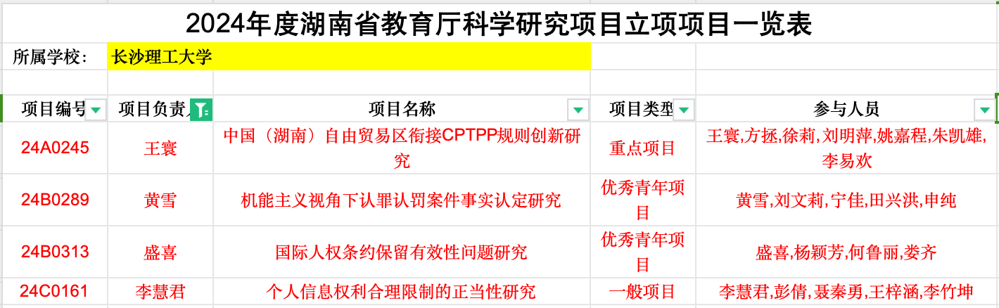 1130日,湖南省教育厅公示了2024年湖南省教育厅科学研究项目立项名单,我院王寰副教授项目入选重点研究项目立项公示名单黄雪博士、盛喜博士项目入选优秀青年项目立项公示名单李慧君博士项目入选一般项目立项公示名单