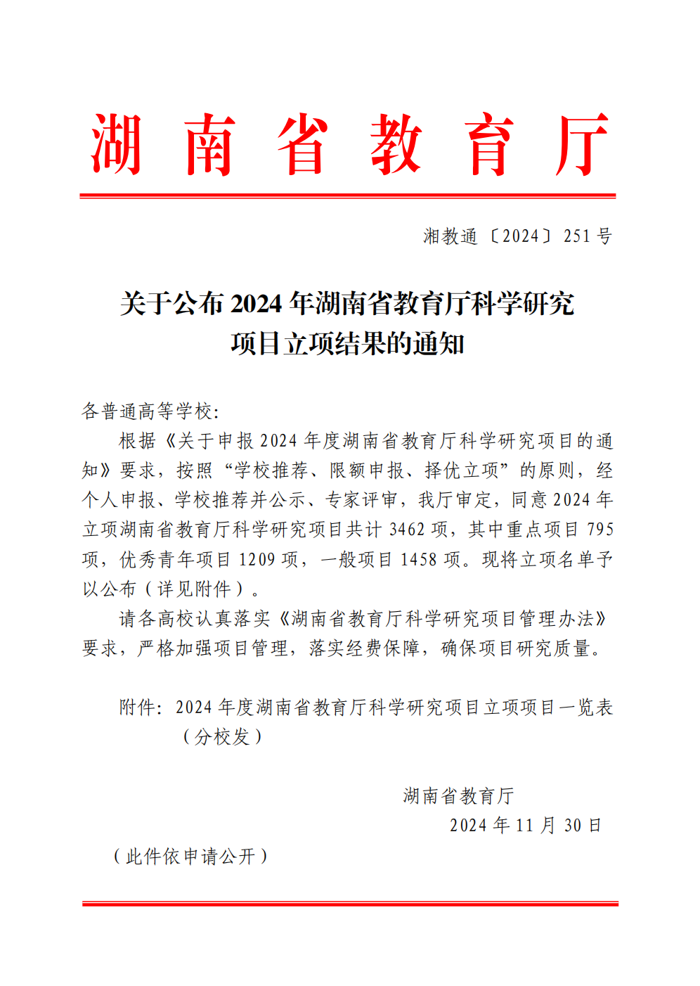 喜报|我院4个项目入选2024年湖南省教育厅科学研究项目立项公示名单