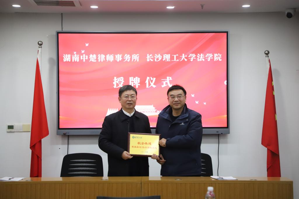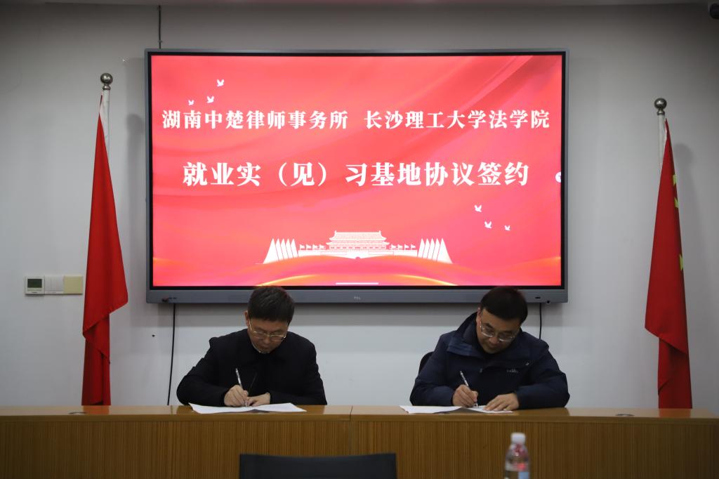 随后,吴勇、杨建明代表学院和事务所签署就业实(见)习基地合作协议,随后举行了简单而隆重的授牌仪式,标志着威廉体育williamhill法学院与湖南中楚律师事务所的合作正式落地。