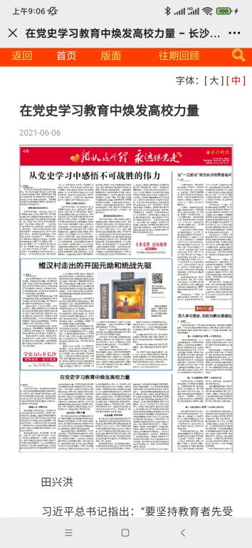法学院党总支书记田兴洪同志撰写的党史学习教育文章《在党史学习教育中焕发高校力量》,在《长沙晚报》(理论版)《长沙晚报掌上长沙》同步发表,并被《学习强国》采用,全文如下: