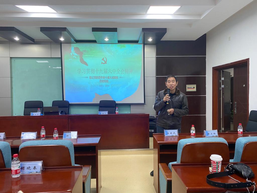 2021年11月23日晚,法学院于金盆岭校区7教212多功能报告厅召开研究生大会,党总支书记田兴洪教授为法学院全体研究生宣讲党的十九届六中全会精神。