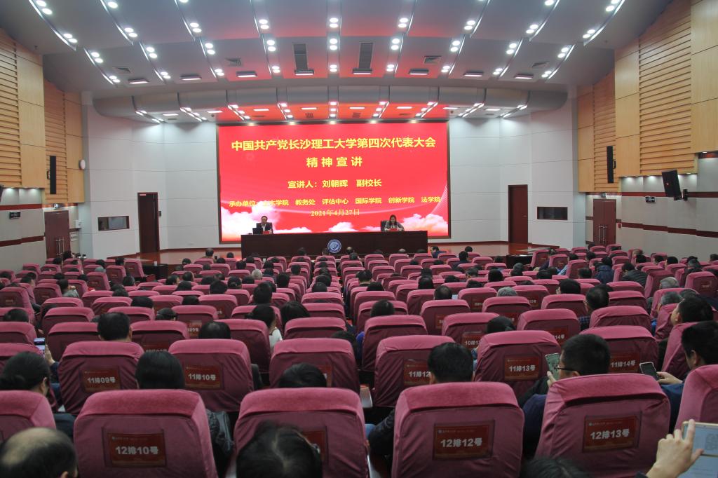 4月27日下午,副校长刘朝晖在图书馆报告厅为土木工程学院、教务处、评估中心、创新创业学院、国际学院、法学院宣讲学校第四次党代会精神,土木工程学院党委书记丁丹主持报告会。
