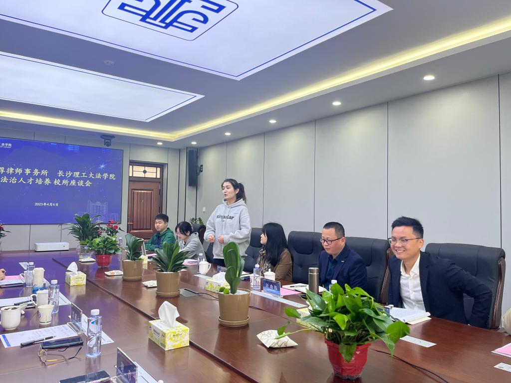 座谈会上,刘阳老师首先介绍了学院的实习、就业基地建设情况,法学院十分重视对法科学子的实践教学培养,校企共建旨在为学生提供更多的实践机会,通过理论与实务的有机结合助力人才成长。