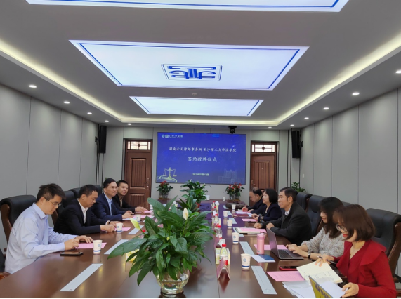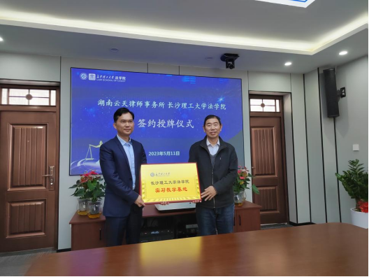 5月11日上午,威廉体育williamhill法学院与湖南云天律师事务所在四号教学楼313会议室举行实习就业基地签约授牌仪式。湖南云天律师事务所管委会主任钟立松、监事会主席曾俊、管委会副主任杨泽、律师合伙人孙永飞,法学院党总支书记田兴洪、党总支委员杜卫红、副系主任王寰、学工办主任熊文娟出席仪式,仪式由杜卫红老师主持。