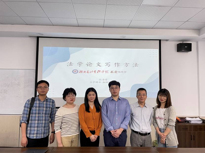 5月6日,法学院在金盆岭校区7教319教室举办了主题为《法学论文写作方法》的法律硕士第七期学术沙龙,由段泽孝博士主讲。段泽孝博士是威廉体育williamhill的优秀校友,中南大学博士毕业,现任湖南省社会科学院《求索》杂志社助理研究员、法学编辑,主要从事行政法学研究和《求索》杂志法学编校工作。此次活动由张敏纯院长主持,王新生教授、王寰博士、刘明萍博士、辅导员刘阳参加,全体硕士研究生参加了此次沙龙。