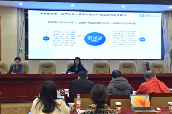 在“生态环境法典编纂与建构中国自主环境法知识体系”分论坛一中,姜明教授受邀以“生态环境法典背景下地方环境立法的适应性路径”为题作专题汇报。本次发言系统阐述了环境法典的出台,标志着我国环境法制迈入体系化与协同化发展新阶段。在此背景下,地方环境立法需基于法典统一框架,立足区域实际实现差异化功能,精准破解本地独特环境难题。当前,地方环境立法仍存在权责边界不明的结构性缺陷,集中表现为重复立法、立法空白与非立法形式变相扩权等乱象,其根源在于制度供给不足、地方立法能力欠缺与激励机制扭曲。对此,地方环境立法应当聚焦四大优化路径:以明确地方性事务范围划定立法权责边界,以提升地方立法能力夯实制度供给基础,以优化政府考核机制纠正立法激励偏差,以健全央地立法协调机制破解规范冲突难题,最终实现统一框架下地方环境立法的精准化、实效化发展。其独到的见解得到了与会专家的广泛认可。