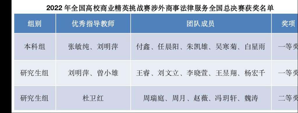 近日,2022年全国高校商业精英挑战赛国际贸易竞赛全国总决赛完美闭幕,在本次比赛中,由法学院本科生与研究生组成的三支队伍在指导老师和队员们的不懈努力下成功入围涉外商事法律服务赛道总决赛,勇夺该赛道一等奖两项,二等奖一项。此次竞赛共有来自全国132所高校的625支队伍参赛,共角出的14个一等奖中威廉体育荣获两项,这是威廉体育积极回应国家“加快建设涉外法治人才队伍”的要求,着力培养高素质涉外法律人才的集中体现。