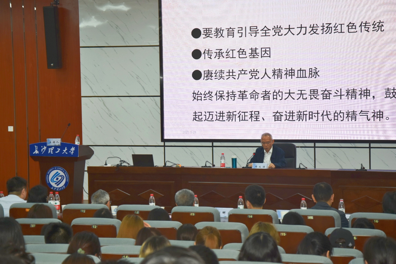 周发源先生是湖南省生态文明研究与促进会会长,也是党史学习教育湖南省委巡回指导第十二组组长,曾任《湖南社会科学》主编,《船山学刊》主编,湖南省十二届人大常委会委员等职。出版专著两部,主编著作二十多篇,先后在《光明日报》《人民日报》等刊物发表文章一百多篇,主持省部级以上课题三十多项,主持撰写调查报告近三十个,作品获省部级以上奖励十五项。学校党委委员、宣传部部长方琼主持讲座。