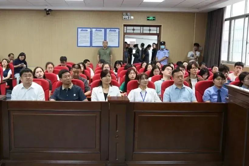 为强化法学实践教学,深化协同育人,切实增强校园禁毒普法的针对性和实效性,在“6.26国际禁毒日”来临之际,6月25日上午,我院与长沙市天心区人民法院联合开展“庭审进校园,青春不毒行”禁毒主题宣传活动。长沙市天心区委常委、政法委书记孙泉,长沙市天心区人民法院党组书记、院长周丹,天心区法院党组副书记、副院长胡精华,法学院党总支书记田兴洪,法学院副院长申纯等领导出席活动,我院80余名学生代表参与旁听。省、市多家媒体进行了现场报道,直播在线观看人数累计超过一百万。