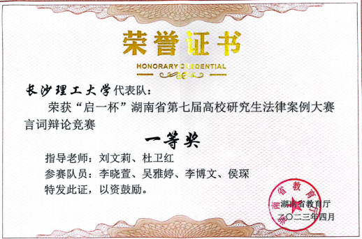 为了将所学理论知识与实践相结合,帮助学生提高逻辑思维和辩论能力,为学生将来从事法律实务工作奠定基础,她多次指导学生参加模拟法庭大赛、案例大赛等高校省级比赛,多次斩获竞赛一等奖。同时,指导学生参加湖南省首届、第四届、第七届青年志愿服务大赛,均获得银奖
