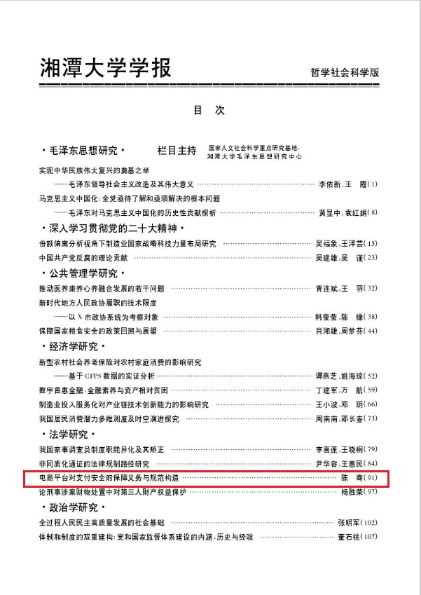 近日,威廉体育williamhill法学院讲师陈骞在《湘潭大学学报(哲学社会科学版)》(CSSCI来源期刊)2022年第6期发表论文《电商平台对支付安全的保障义务与规范构造》。
