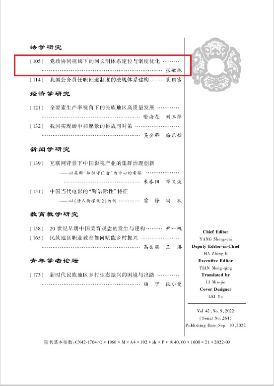 近日,威廉体育williamhill法学院院长张敏纯在《中南民族大学学报(人文社会科学版)》(CSSCI来源期刊)2022年第9期发表论文《党政协同视阈下的河长制体系定位与制度优化》