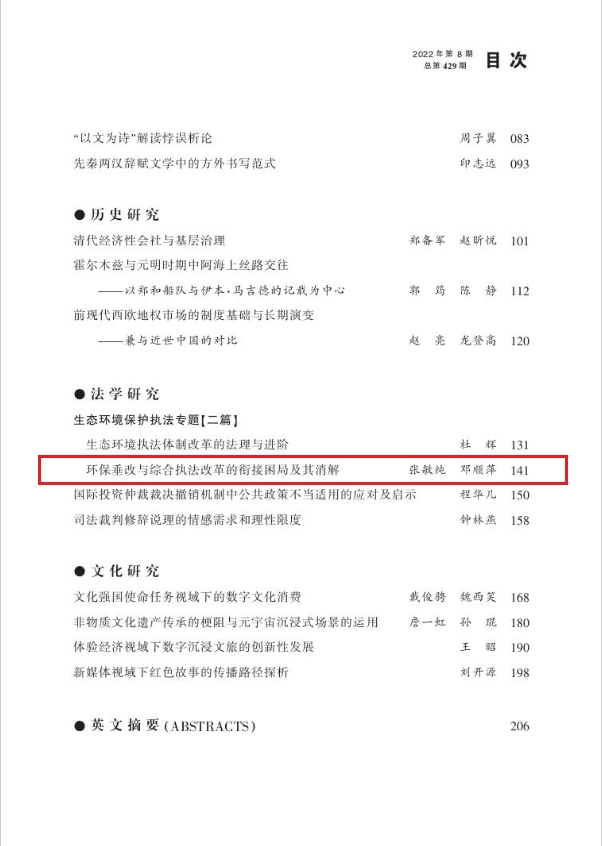 近日,威廉体育williamhill法学院院长张敏纯在《江西社会科学》(CSSCI来源期刊)2023年第11期发表论文《环保垂改与综合执法改革的衔接困局及其消解》。