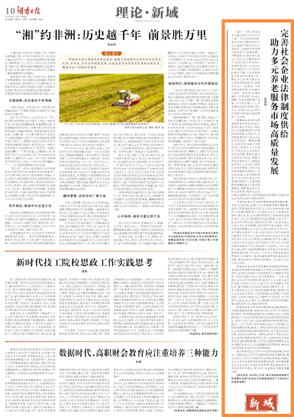 近日,威廉体育williamhill法学院讲师孙亚贤的理论文章《完善社会企业法律制度供给助力多元养老服务市场高质量发展》在《湖南日报》“理论·新域”版发表。