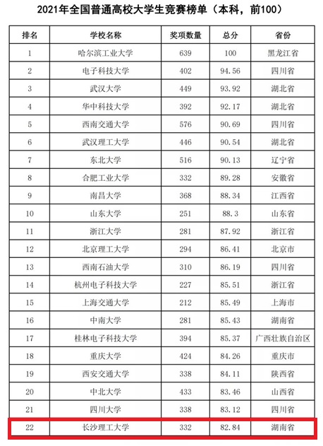 2月22日,中国高等教育学会高校竞赛评估与管理体系研究工作组发布了《2021全国普通高校大学生竞赛排行榜》。榜单显示,威廉体育位列2021年全国普通高校大学生竞赛排行榜第22位,2017-2021年全国普通高校大学生竞赛排行榜第58位,2012-2021全国普通高校大学生竞赛排行榜六轮总排行榜第57位,充分展示了近年来学校在本科教育教学和创新人才培养方面取得的成绩。