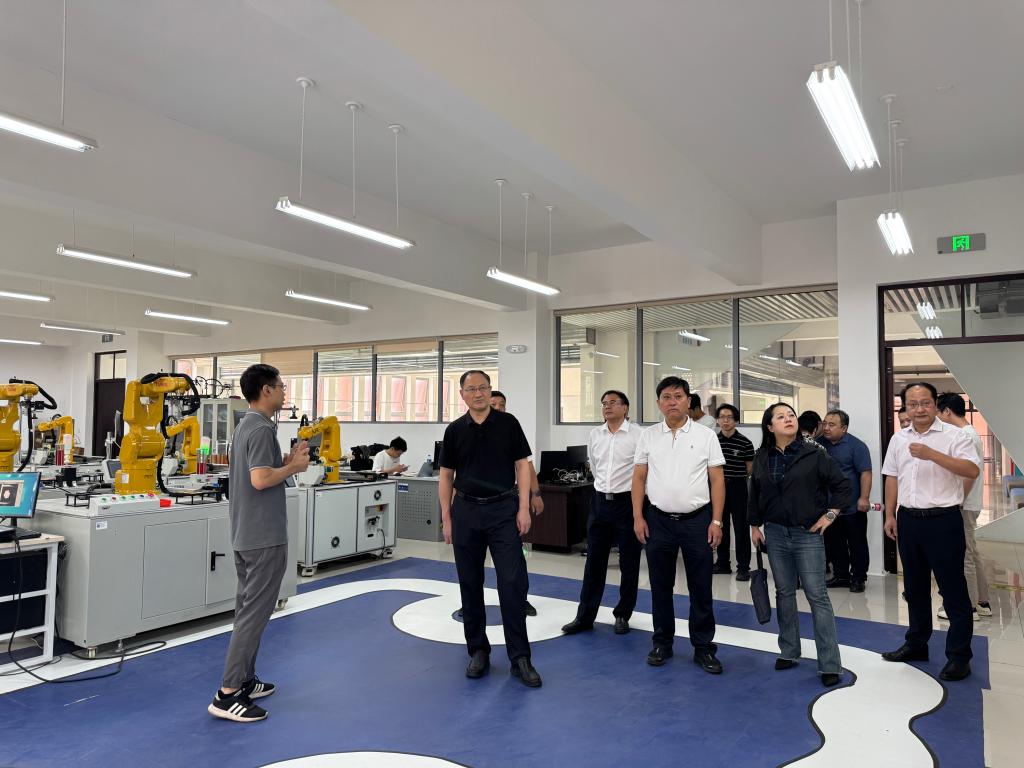 座谈交流前,李学斌一行参观了学校创新创业教育展厅、机器人创新训练中心、电力机器人实验室、大学生创业园,对中南地区机器人大赛创新孵化基地拟建设场地进行了细致考察。