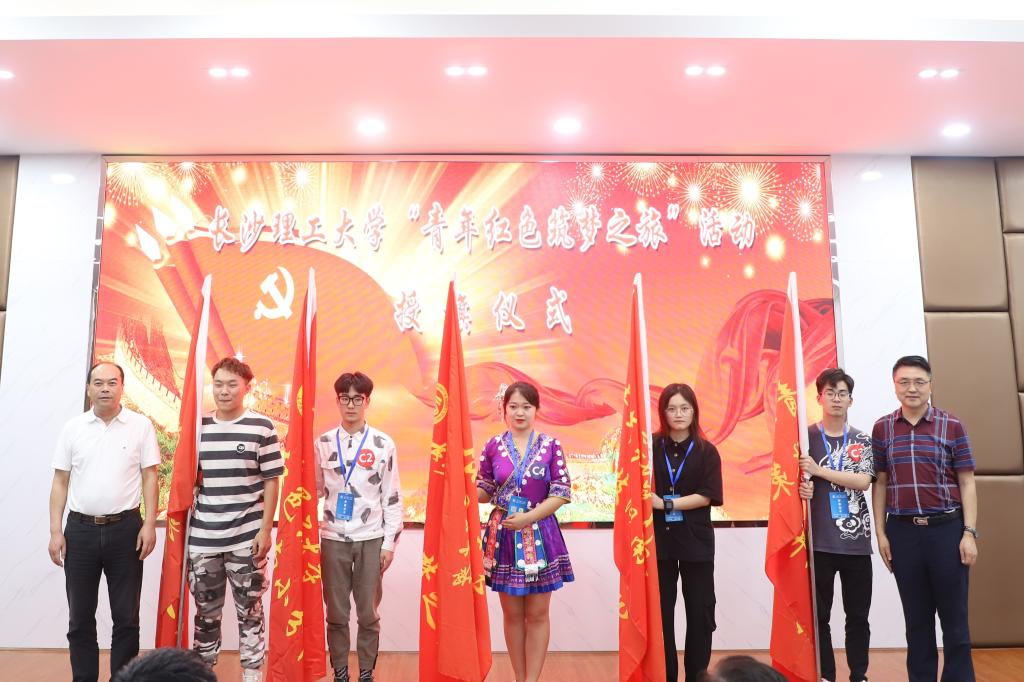 项目演示结束后,进行了“青年红色筑梦之旅”活动授旗仪式。由创新创业教育学院负责人为今年参加“青年红色筑梦之旅”活动的“科技小分队”“教育小分队”、“法治小分队”、“健康小分队”和“政策宣讲小分队”授旗。