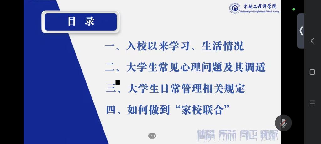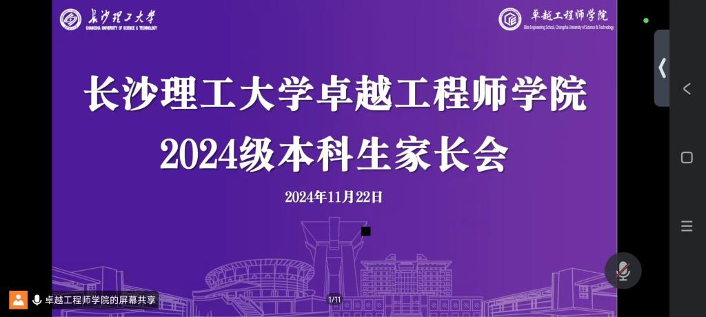 11月22日晚,卓越工程师学院召开2024级本科生家长会,院长韩艳、院党委副书记陈华出席,全体2024级本科生家长参会,会议由年级辅导员陈若晨主持。