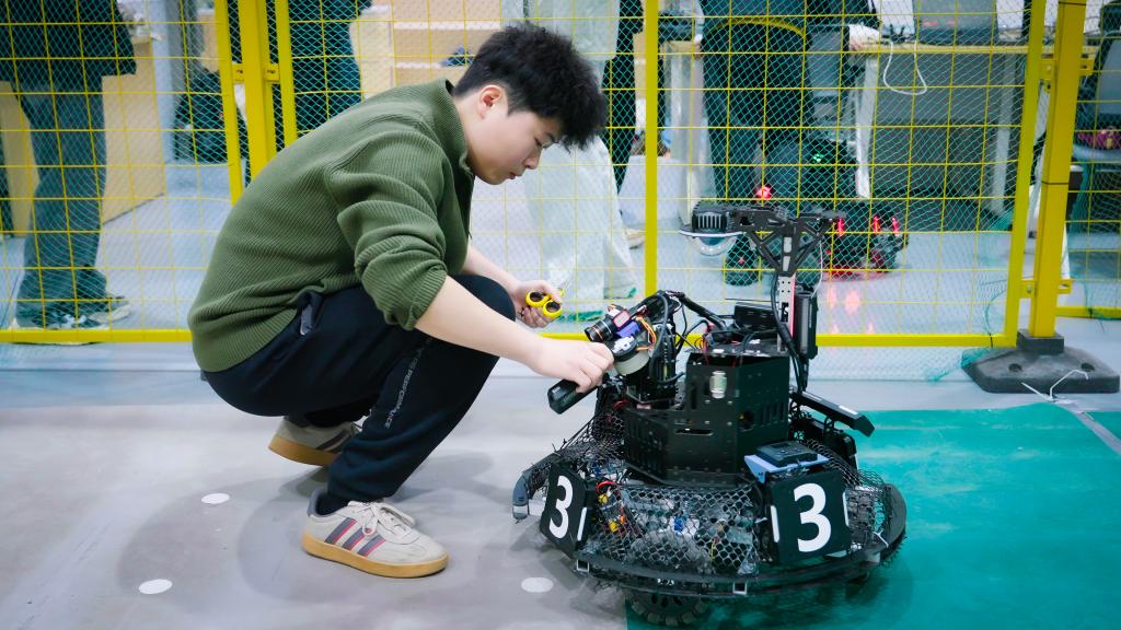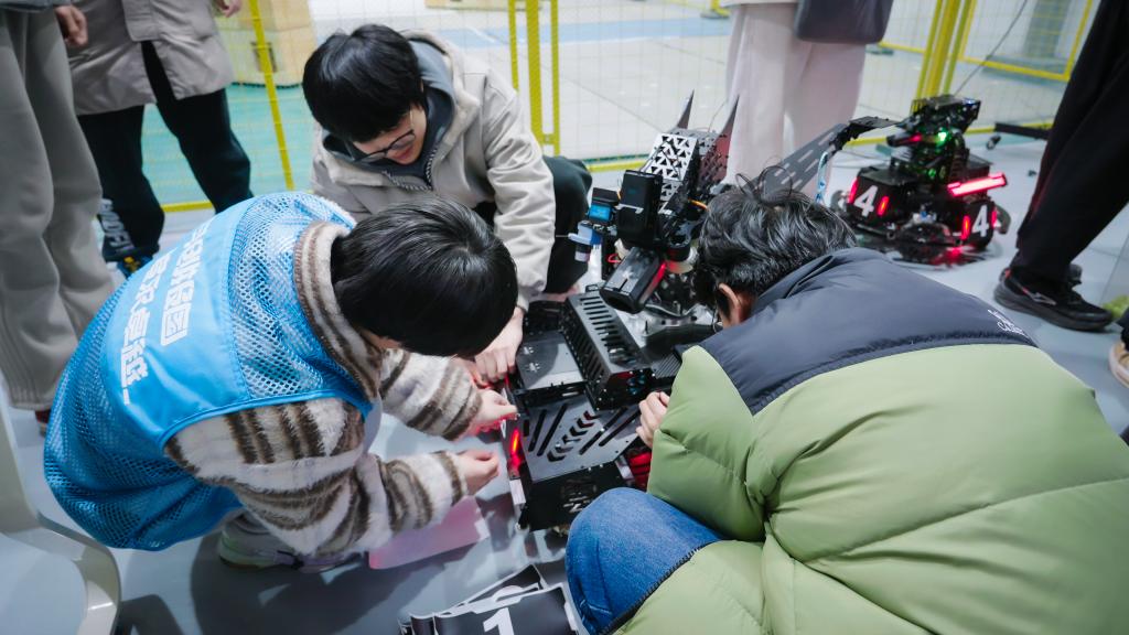 RoboMaster机甲大师赛作为一项综合性机器人对抗赛事,涵盖了机械设计、电子控制、人工智能等多学科领域。本次四校友谊赛以开放式技术验证为核心,聚焦智能机器人系统的模块化开发与协同创新。各校代表队基于RoboMaster技术框架,分别展示了在机械传动优化、嵌入式系统开发及多机通信协议等领域的特色成果。联合赛事现场呈现出产学研深度融合的生动图景。红蓝双方在对抗演练中同步开展技术调试,操作团队通过专业软件实时监测机器人运动轨迹与机械臂动态参数,针对性地优化控制算法与动力分配策略。步兵机器人的战术突进、英雄机器人的精准打击与工程机器人的快速支援,它们通过灵活的走位和默契的团队配合,展现了当代大学生卓越的科技创新能力和实践动手能力。