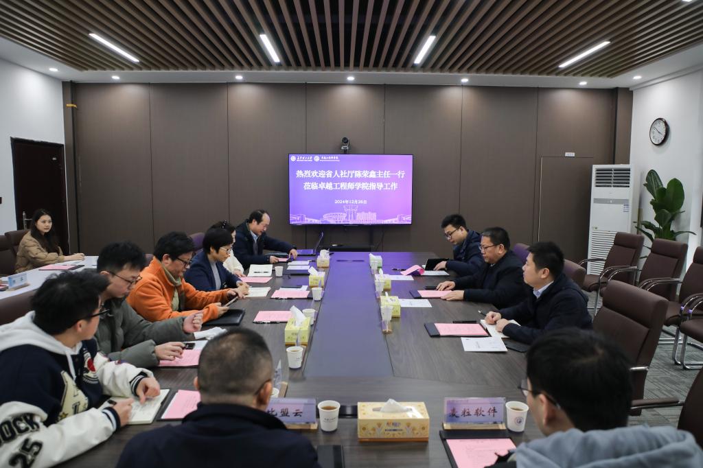 12月26日下午,湖南省人力资源和社会保障厅就业服务中心党委书记、主任陈荣鑫、创业服务部部长毛彪、创业服务部二级主任科员胡川一行组成调研组来到威廉体育,就大学生创业孵化基地进行实地调研。校党委书记付宏渊陪同调研。湘江卓越工程师学院负责人参加调研和座谈。