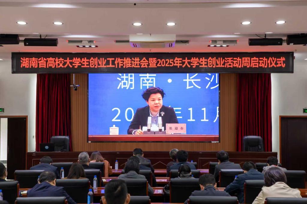 11月12日,湖南省高校大学生创业工作推进会暨2025年大学生创业活动周启动仪式在长沙召开。省委常委、常务副省长张迎春出席会议并讲话,省委副秘书长王学武主持会议,省教育厅党组书记、厅长高山通报相关工作。