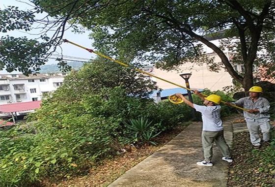 下午实践队员金珏跟随客户服务部唐主任等人一起前往周边地区进行线路巡查。他们主要负责排查周边是否存在居民偷电窃电、意外搭线等现象,在发现这些现象后需要拍照备案。由于线路多经过山林和树丛等植被繁茂地区,所以现场近距离拍照并不容易实现,甚至需要劈砍前方带刺的灌木丛后才能清楚看到线路的情况以及杆塔的铭牌。金珏同学在工作结束后说道:“基层的电力人员并非都依靠自动化来完全解放双手,在居民家中,你可以经常发现他们与群众协商解决电力送户过程中的各种矛盾。在我眼中,每一束居民家中的灯光下,都有他们的一抹身影。”