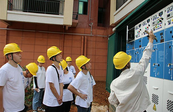 在本次调试工作中,队员们跟随谭师傅先后进行断路器内部继电保护试验、环网柜母线测量回路与保护回路性能测验以及进出线柜内线路的高压绝缘试验。调试开始前,谭师傅为队员详细介绍各类调试的原理和步骤。调试期间,每位队员都在谭师傅指导下动手实操,同时在调试间隙,谭师傅还为队员们解答有关线路分配,设备工作原理等疑问。