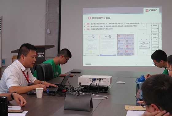 7月22日上午,电气学院赴中车浙江尚驰有限公司株洲公司暑期实践队全体实践队员在湖南省新能源汽车电机工程技术研究中心302会议室参加由中车浙江尚驰有限公司株洲公司新能源驱动试验中心主任陈康昊主讲的永磁同步电机检测试验基础知识培训。下午,全体实践队员在新能源驱动试验中心实地参观学习。