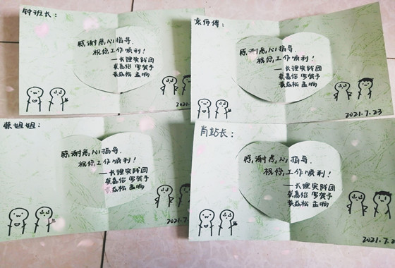 相识9天,队员们已经和师傅们结下了深厚的友情。师傅们在言传身教中诠释着“电力人”的敬业精神,用自己乐观、积极的工作态度潜移默化地影响着队员们。各班组的队员们在完成实践任务的同时也通过自己的方式向师傅们表示了感谢。
