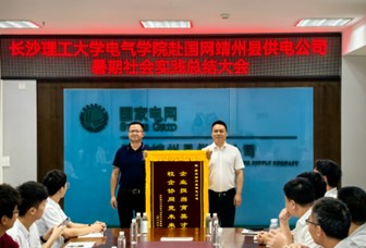 队员代表实践总结后,丁丹书记向国网靖州县供电公司授牌“大学生社会实践基地”,周巍副书记授“校企协同育人标杆”锦旗,并为实践导师颁发聘书。国网怀化市供电公司代表刘一科、左鹏辉先后讲话,刘一科提及公司与电气学院的深厚联系,期待未来深化合作;左鹏辉作为长理校友,分享了母校科研成果在公司的应用,勉励实践队员珍惜经历、奋勇前行。