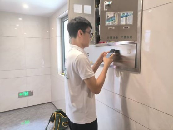 在分支箱数据采录现场,实践队员李紫豪与李定康顶着高温深入台区,依托“i国网”移动终端对设备信息进行逐项核对与更新。两人严格按照“数据零误差”要求,对分支箱编号、负荷参数等关键信息进行多轮复核,确保系统数据与现场实际100%匹配,为后续线损分析和运维决策提供精准支撑。