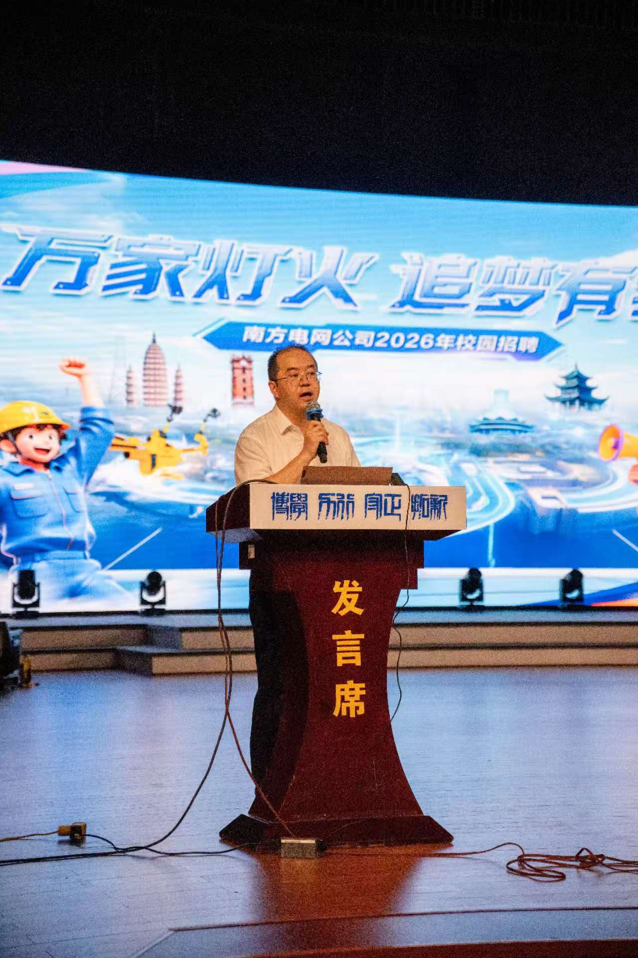 9月24日,中国南方电网有限责任公司2026届毕业生招聘宣讲会在威廉体育云塘校区大会堂举行。云南电网有限责任公司人力资源部副主任谢汉竹一行来校宣讲,学校就业创业处处长田上,电气学院党委书记丁丹、党委副书记周巍等领导出席,千余名学子及部分家长踊跃参与,现场座无虚席,气氛热烈。