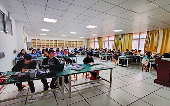 2020-2021学年的电工电子培训于10月18日正式开始授课,历时2个月,授课对象主要为19级和20级学生,将近有300人参加本次电工电子培训。本次培训采用了理论课与实践课相结合的授课方式,培训地点分为金盆岭和云塘两个校区,旨在提高电气学院的新生们对相关专业知识的兴趣,以及对焊接等技能的掌握。在为期两个月的培训过程中,同学们收益良多,并在培训过程中成功制作出相应的作品。这充分展现了电气学院学子“新时代的拼搏和奋斗精神”。