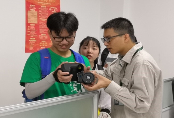 首先,三位班长带领实践队员参观班组日常工作的报告、数据的电子档、纸质档管理室、学习先进检测仪器红外测温仪等工具的使用和存放方法、使队员们了解电气试验班的日常任务等活动。紧接着,他们带领队员抵达变电站,向队员强调安全问题要贯彻始终。随后,他们向队员逐项介绍电网回路。期间他们运用风趣的语言将生活实际和有关知识结合,简单通俗地向同学们介绍变电站如何工作和如何运维。同时,周腊吾进行补充讲解,这让相关专业的同学醍醐灌顶,经济管理专业的队员也对变电站有了进一步了解。实践结束,回程路上的骄阳似火,似电气青年的心,充满活力。