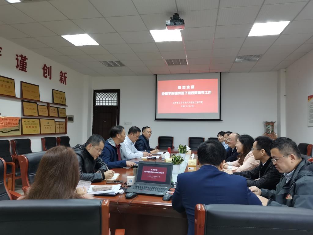 10月19日上午,电气学院与经管学院领导班子成员在工一B505联合开展中心组理论学习研讨,学习贯彻落实校党委书记付宏渊、校长曹一家在新学期第一次党政联席扩大会议和学院调研会上的指示精神,深入推进党史学习教育“我为群众办实事”实践活动