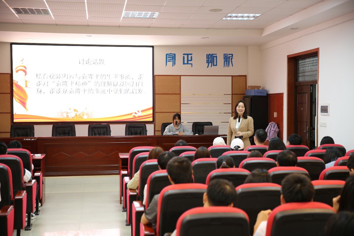 党课后,学生党员集体观看了《为时代而歌:袁隆平》视频。影片讲述了袁隆平在杂交水稻技术科研路上不断探索、砥砺奋进的事迹。观影结束后,邵巧艳说道袁隆平老先生的逝世是国家和人民的一大损失,但逝者已逝,生者如斯,我们要向袁隆平老先生致敬,向他学习并延续坚守初心不懈奋斗、矢志不渝服务人民的精神。学生党员代表彭子豪表示袁隆平老先生在研究过程中上下求索坚持不懈的精神告诉我们,机遇不会自己出现,它需要我们用汗水去寻找和发现。学生党员代表郭端格表示,在我们的生活和学习中,不断的出现很多的困难与挑战,我们应该不断的调整自己,去面对它们,坚持下去,即使最后没有结果,但是过程都是值得回忆的,都是一笔不一样的财富。