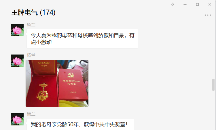 收看过程中,老师和同学们被29位“七一勋章”获得者的先进事迹深深打动,特别是看到张桂梅、马毛姐、王占山等人上台领奖的时候,很多同志热泪盈眶。自行收看的老师还在学院微信群中晒出来自己家人获得在党50年的奖章和证书,既为家人感到自豪也为自己是一名共产党员自豪。