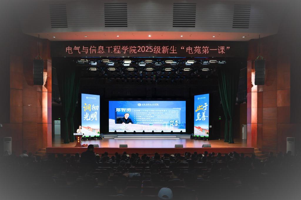9月23日,学院1999届校友、长沙科智防雷工程有限公司董事长兼总经理郑智勇先生捐赠仪式在2025级新生“电苑第一课”现场举行。副校长张军辉出席并讲话,校友中心主任唐青,学校教育基金会秘书长肖晖,学工部、校团委相关领导,学院党委书记丁丹、院长陆佳政等院领导参加。