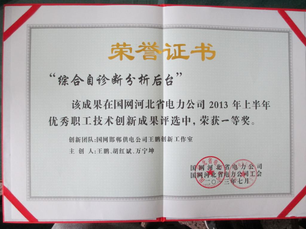 2010年经过三个月的刻苦学习,获得河北省电力公司厂站端调试检修员竞赛团体二等奖,个人第五名。在省公司综自专业比赛回来后,主持了变电检修二工区220kV留旺站的综自改造工作。在留旺站的综自改造期间,积极将自己学习到的自动化知识应用工程实际中去,取得了显著的效益。例如,利用自身继电保护专业优势,将常规变电站中央信号原理应用到变电站综合自动化系统远方事故退画面功能当中,解决该原有该技术不可靠的难题。该课题与利用手机短信普及自动化知识的课题一起在当年被河北省电力公司自动化专业推广。
