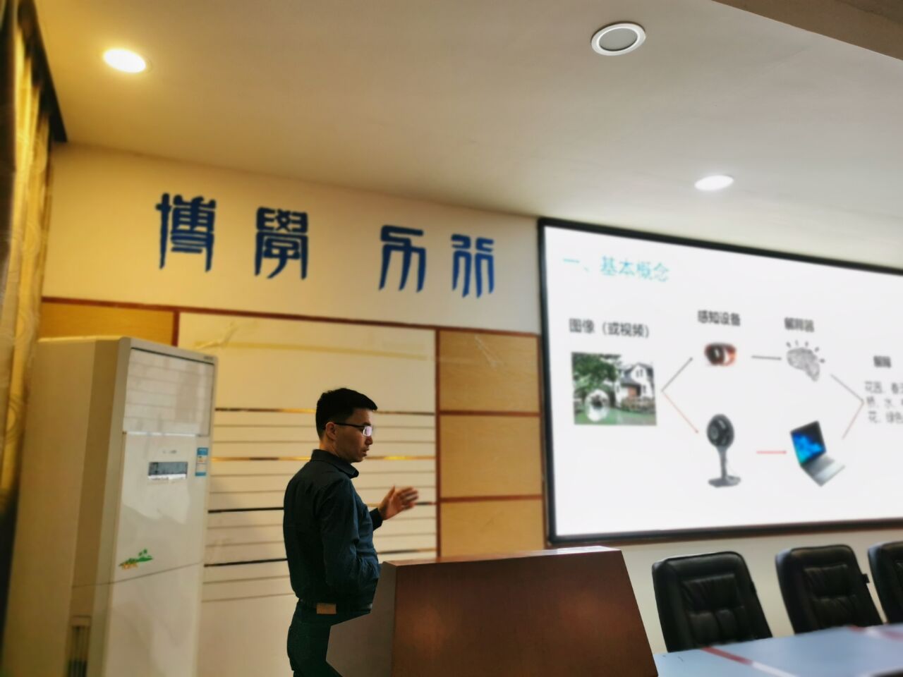 贾智伟向师生们阐述了机器视觉的基本概念、发展状况和应用情况。