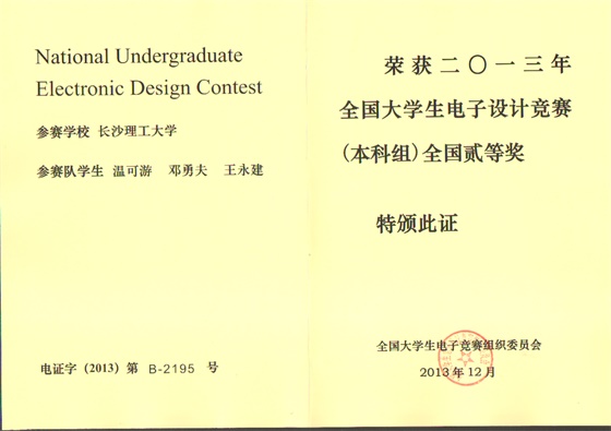 2005年以来,中心学生在全国大学生电子设计竞赛、“挑战杯” 全国大学生课外科技作品竞赛、“挑战杯” 全国大学生创业大赛、全国智能机器人竞赛、全国大学生节能减排社会实践与科技竞赛等一系列主要赛事中都取得了优异成绩,共获得国家级奖励35项,省级奖励83项,具有突出的创新能力。详情见附件。