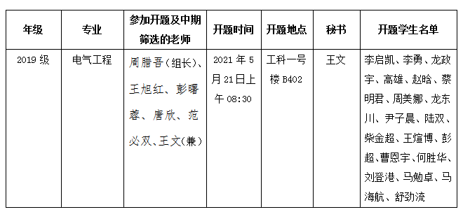 电气工程五组开题及中期筛选考核安排已公示,请大家提前填写好《威廉体育williamhill研究生论文开题报告表》与《研究生中期筛选考核评定表》,做好答辩准备。