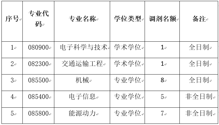 交通运输工程、电子科学与技术、机械专业,调剂系统开放时间:2021年3月30日20:00—2021年3月31日08:00,能源动力(非全日制)、电子信息(非全日制)专业,调剂系统开放时间:2021年3月30日20:00—2021年3月31日14:00。