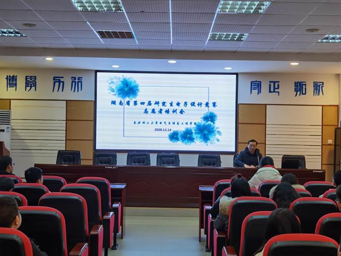 12月14日晚,湖南省电子设计竞赛志愿者培训会在云塘校区工一B503举行,电气学院创新中心主任贺科学、学工办辅导员邵巧艳、欧彩玲出席会议,参与本次比赛的所有志愿者参加会议。